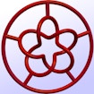 A digital illustration of a faceted crystalline sphere with three colored shapes inside of it.