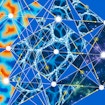 A digital illustration of three spherical objects. Two of the objects have each within them three smaller spheres arranged in a triangular shape and connected by lines made up of smaller orbs. One of the objects has two smaller spheres connected by a line of smaller orbs. All of the objects appear to be glowing and have within them a galaxy-like design.